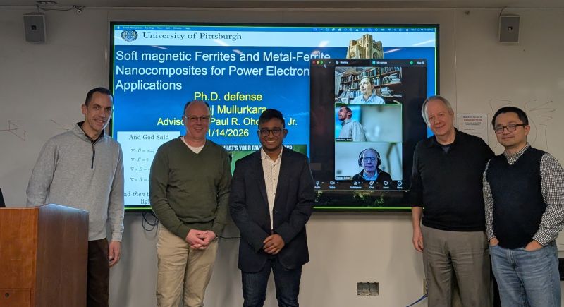 Prof. Paul R. Ohodnicki, Jr. leads the Magnetic, Electronic, and Photonic Materials and Device Laboratory under the Mechanical Engineering and Materials Science Department at the University of Pittsburgh with an emphasis on developing an improved understanding of the interconnection between functional material properties, electronic band structure, and nano/microstructure as well as the optimal integration with emerging device platforms. An early focus of our group is targeting exploration of novel processing methods for emerging high frequency magnetic materials using applied electromagnetic fields spanning the frequency range from DC to optical. Successful pursuit of this research with scientific and technical rigor also requires a detailed understanding of the interplay between electromagnetic fields and emerging material systems under investigation, and so the characterization of material electromagnetic properties over a wide frequency range is also a core capability of the laboratory. Novel photonic and electronic thin film materials are also of interest, including emerging materials with complex electronic band structures such as correlated electron and multi-phase nanocomposite-based systems. Integration of novel functional materials with device platforms is also a core pursuit of the laboratory with applications including optical fiber-based sensors, passive wireless sensors, and inductive components for a wide range of power applications. In all research endeavors, fundamental scientific questions that are pursued and explained have a clear linkage with real-world application needs now or in the future. The Ohodnicki lab was recently started in February of 2020 and is currently in the process of being equipped with a range of instrumentation including: (1) furnaces and ovens for high temperature thermal processing with controlled heating profiles, (2) electromagnetic field assisted thermal processing, (3) high frequency impedance and vector network analyzers with magnetic and dielectric property test fixtures as well as a probe station, (4) automated sensor testing systems, and (5) portable electronic and optical measurement instrumentation. A strong interest exists in tying these capabilities and research endeavors with fundamental and even first principle theoretical calculations to both inform and improve future theoretical modeling efforts as well as to pursue initiatives such as computational design of materials and processing approaches. The laboratory also has an interest in applied electromagnetic modeling methods and techniques to understand the requirements for optimal integration of emerging functional materials systems with device applications.